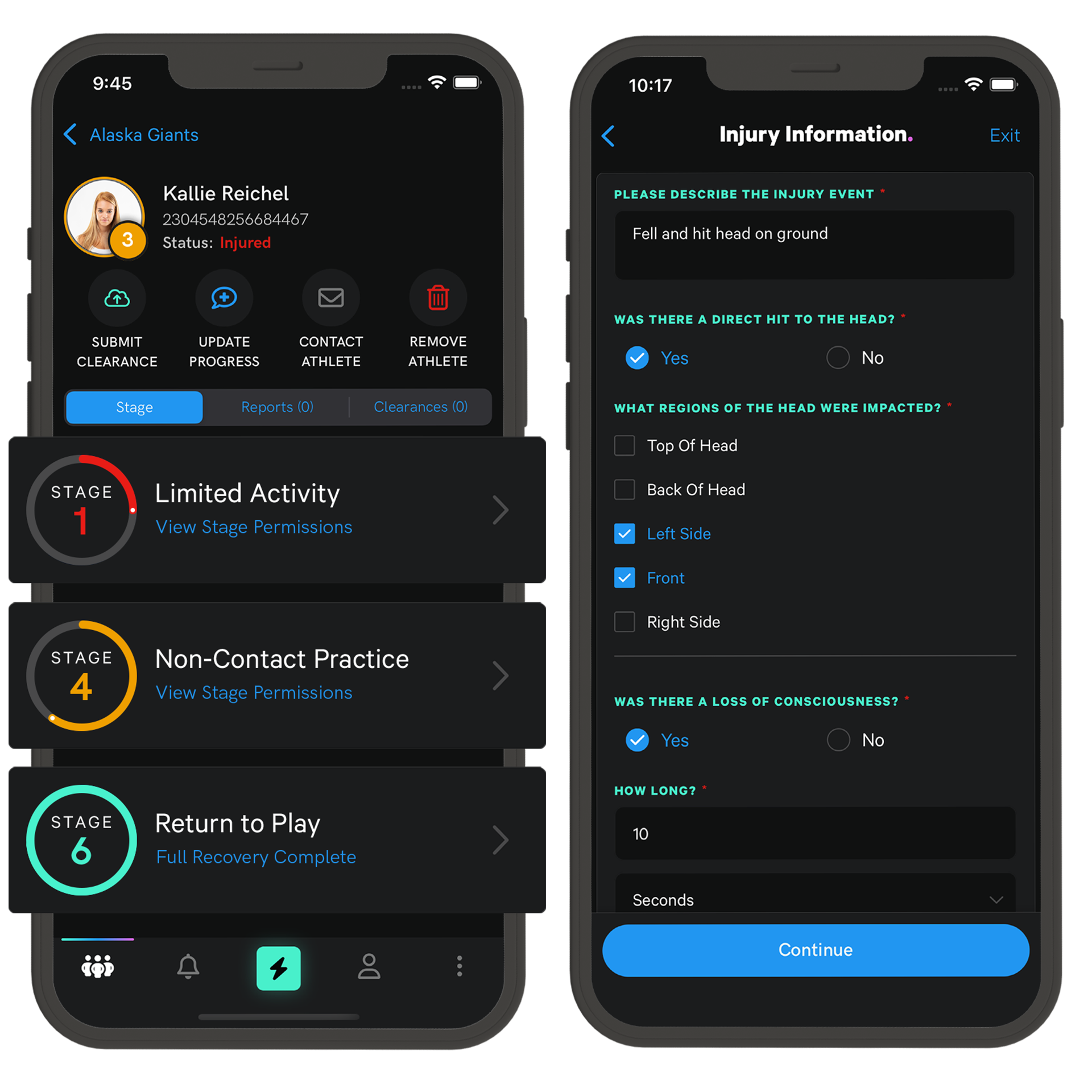 Report and track concussions: Capture concussion incidents and maintain a log for future reference.